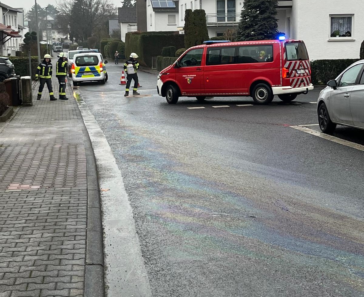 Am Mittwochnachmittag wurde die Feuerwehr Liederbach zu einer Ölspur in die Straße „Die Ritterwiesen“ alarmiert. Vor Ort stellte sich heraus, dass sich die Ölspur über eine Länge von rund 100 Metern erstreckte. Die fachgerechte Beseitigung wurde durch eine Spezialfirma durchgeführt.