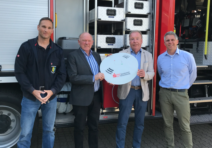 Der Direktionsbevollmächtigte der SV Sparkassen Versicherung Dieter Wagenknecht übergab nun symbolisch einen Zuschuss in Höhe von 1.000 Euro an die Freiwillige Feuerwehr der Gemeinde Liederbach zur Anschaffung einer Brandfrüherkennungsanlage.